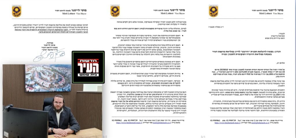 חדשות העיר: סערת הפרויקט של זיווה כהן. על רקע מאבקם של תושבי בית שמש מול יזמי נדל"ן חסרי רסן, שהגישו לאישור מוסדות התכנון תוכנית בהיקף חסר תקדים להגדלת פרויקט הרובע לסך של 16,000 יח"ד(!) אשר עלולה להביא לקריסת מערכות העיר – פנה המשנה לרה"ע ויו"ר סיעת דרך, מוטי לייטנר, במכתב בהול לראש העיר שמואל גרינברג.