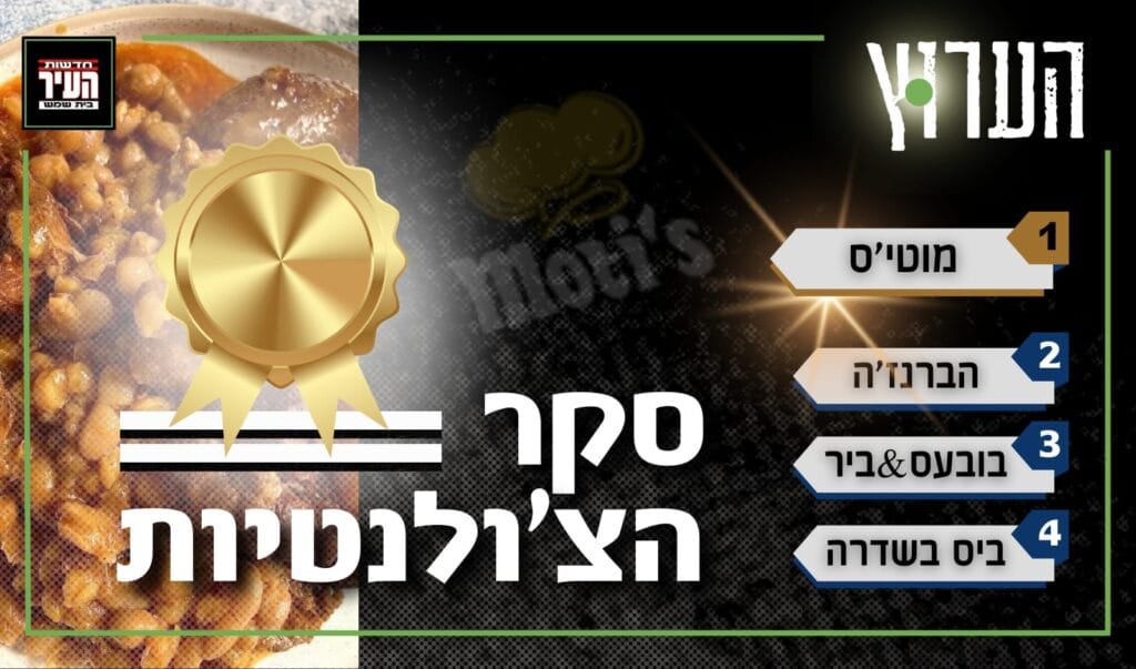 חדשות העיר: מתוצאות הסקר שנערך בערוץ הוואטסאפ של 'חדשות העיר' וגרף למעלה מ-3,000 הצבעות, עולה כי מסעדת הצ'ולנט האהובה ביותר בבית שמש היא מוטיס, שזכתה ל-724 הצבעות (נכון לשעת פרסום תוצאות הסקר).