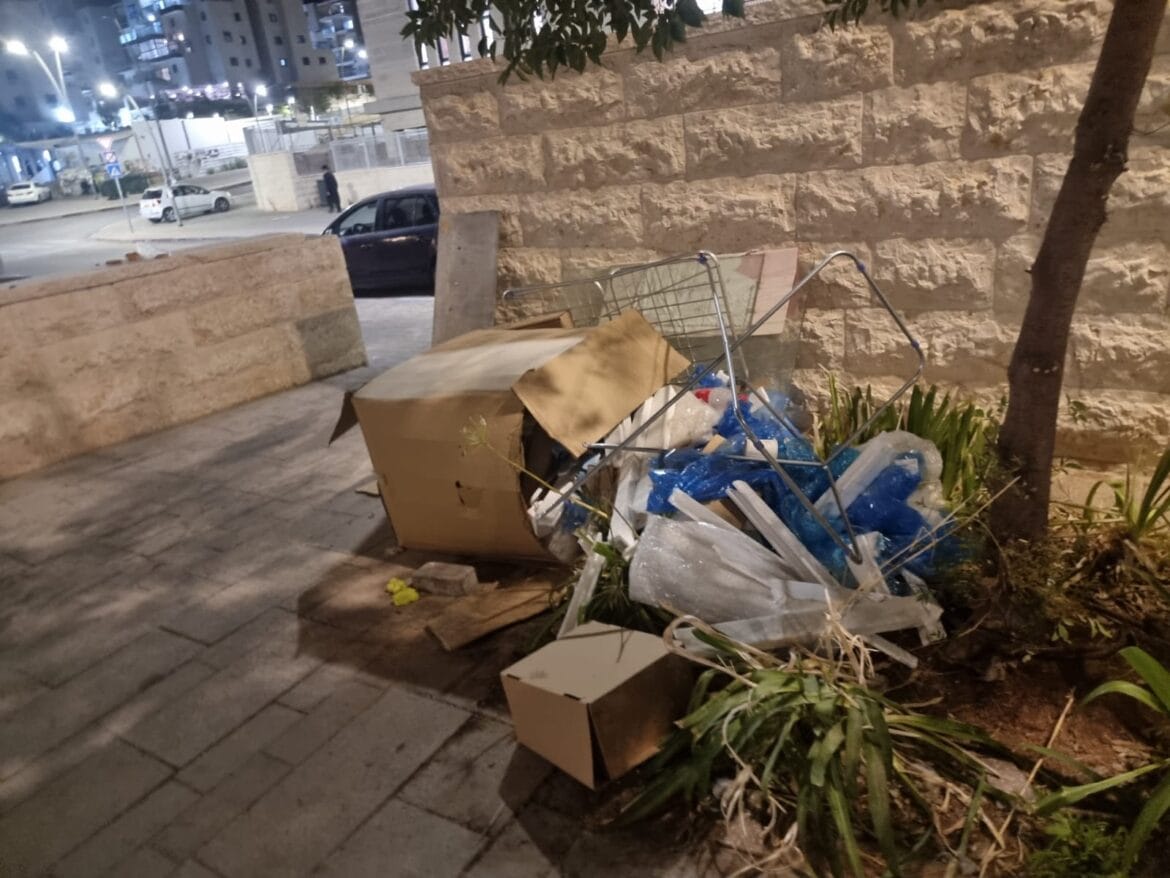 הפסולת ברחבי החניון שזה עתה 'הוברק' לשבת
