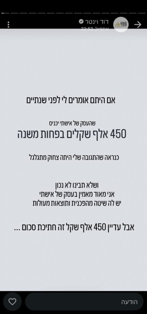 פישל גם נחשף השבוע לראשונה כמה אשת הגבות, רותי וינטר, מרוויחה בשנה…