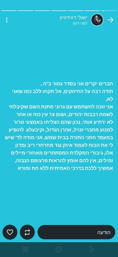 הזמר הפופולרי מבית שמש, יואלי דוידוביץ, סובל מטרור הקיצונים לאחר שהופיע באירוע העירוני הגדול לבני הישיבות | כך הוא הגיב להודעת החרם - וזו התגובה שקיבל מאהרל'ה סאמט