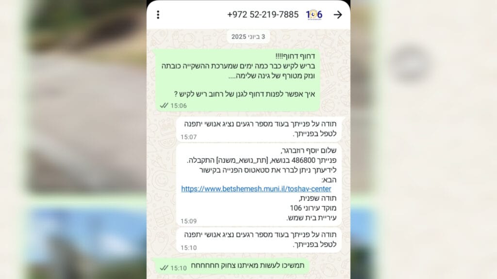 גם כאן זה הסתיים ללא מענה – התכתבות תושב עם המוקד